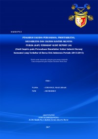 Pengaruh Ukuran Perusahaan, Profitabilitas, Solvabilitas dan Ukuran Kantor Akuntan Publik (KAP) terhadap Audit Report Lag (Studi Empiris pada Perusahaan Manufaktur Sektor Industri Barang Konsumsi yang Terdaftar di Bursa Efek Indonesia Periode 2013-2015)