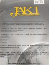 Jurnal ini terdiri dari enam materi yaitu; Pengaruh Sistem Informasi Teknologi Elektronik Atas Task Performance Auditor Kantor Akuntan Publik Big 4; Hubungan Regulasi Pasar Modal Dengan Atribut Laba: Suatu Analisis Lintas Negara; Semiotica Laba Akuntansi: Studi Kritikal-Posmodernis Derridean; Evaluasi Regulasi Atas Praktik Penghindaran Pajak Penanaman Modal Asing; Anteseden Komitmen Organisasi dan Motivasi: Konsekuensinya Terhadap Kinerja Auditor Intern; dan Analisis Faktor-faktor Penentu Persistensi Laba.